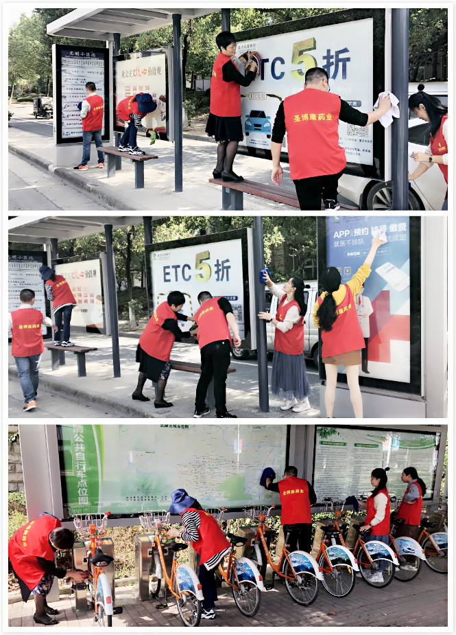 On October 30, the party members and cadres of shengbokang, led by general manager Du, Secretary of the Party branch, came to the public bus stop and public bicycle stop for cleaning. The bus stop signs and public bicycles were scrubbed and cleaned. Party members are not afraid of being dirty and tired. They carefully wipe the dust on the bus stop signs to make the original dusty bus stop signs clean.